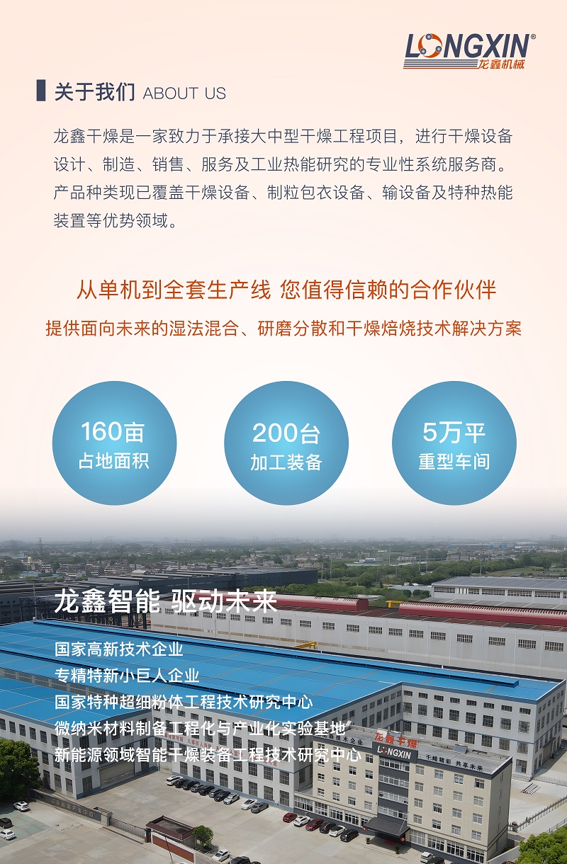 每一次干燥工艺的革新,都在重新定义工业材料的性能边界。龙鑫干燥以持续创新为驱动,以客户需求为导向,正携手全球客户,共同开启先进材料制造的“超细、超纯、超稳”新时代。选择龙鑫,不止是选择一台设备,更是选择未来十年的技术竞争力与可持续发展之路。