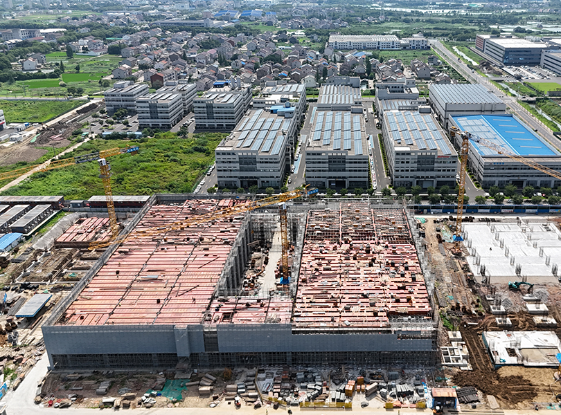 回望2024年8月,项目奠基仪式上那一片尚待开发的土地,如今已矗立起一座集智能化、绿色化、高效化于一体的现代化工厂。从第 一根桩基打下,到主体结构全面封顶,短短一年多时间里,龙鑫智能与各参建单位通力协作、攻坚克难,以“龙鑫速度”刷新建设效率,以“龙鑫标准”保障工程质量。无论是酷暑高温还是寒冬雨雪,施工现场始终井然有序、高效推进,充分展现了龙鑫人开拓创新、精益求精的工匠精神。