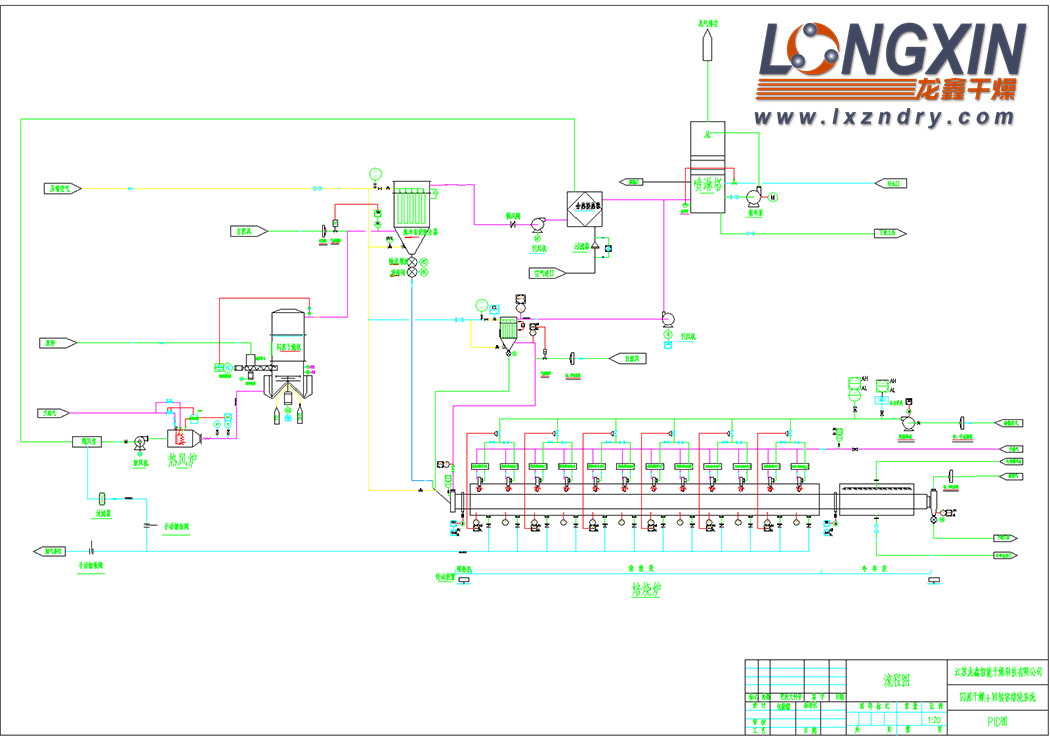 龙鑫智能基于多年热工装备研发经验,结合铁氧体用高纯氧化铁红的工艺要求,构建了“闪蒸干燥 + 燃气回转焙烧”一体化产线,实现从前驱体到预烧料的连续、洁净、高效转化。