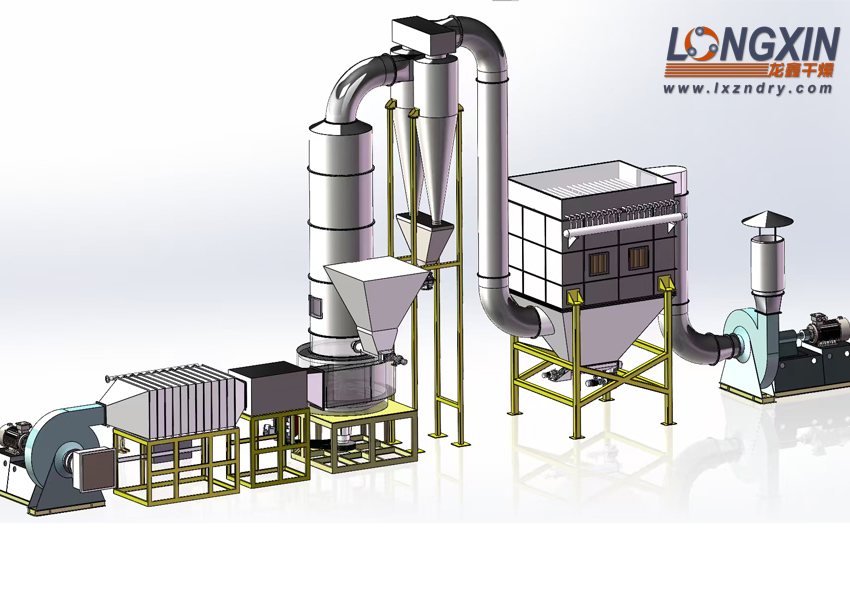采用高速旋转打散器与高温热风协同作用,湿态前驱体(如氧化铁红湿粉)在数秒内完成游离水脱除。物料呈悬浮状态受热,避免结块与局部过热,出料粒度均匀、比表面积高,显著提升后续固相反应活性。