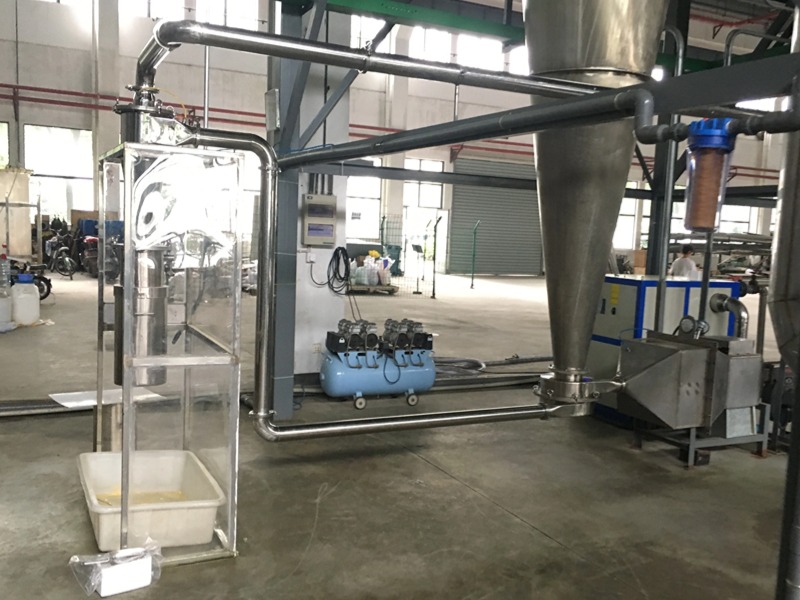 | 配套系统 | 冷冻除湿风送冷却、空气锤防积粉、安保防爆门 | 各类高粘、热塑、吸湿性肽粉 |