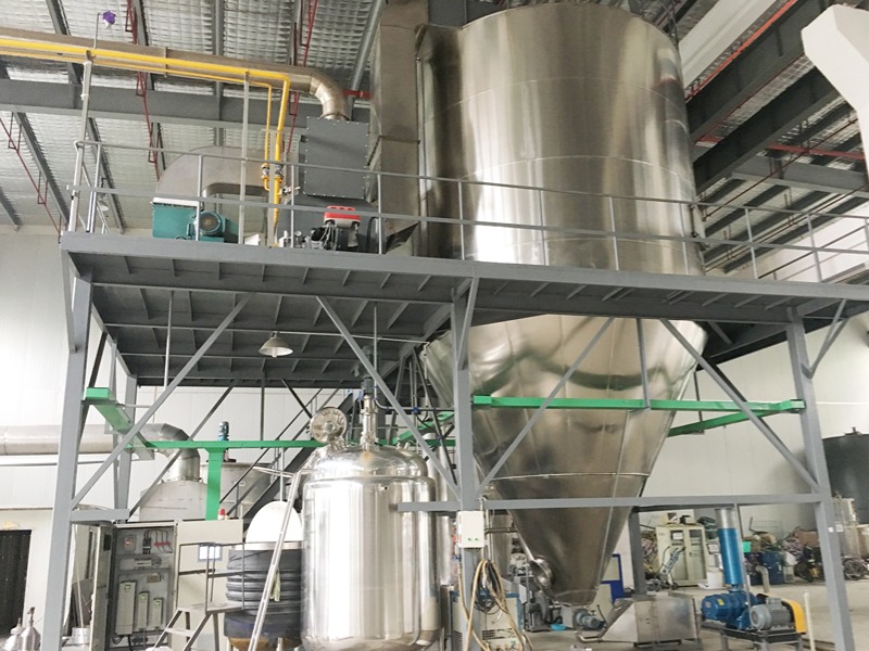 热风由塔顶进入,与塔底向上喷雾的雾滴形成混合流接触,雾滴干燥成球后沉降,尾气携带细粉由塔顶排出。该结构使塔内形成环形风幕,大幅减少塔壁挂粉,可连续生产多天以上无需清洗,大幅节约水、蒸汽及人工成本。
