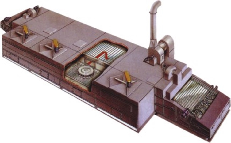 (2) 网带穿流热风的利用不充分,排风温度高,尾气回收成本高,能源浪费严重;